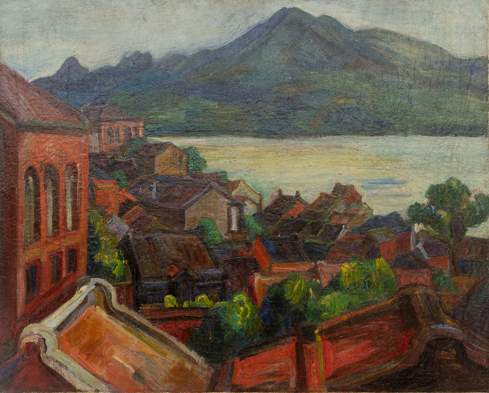 陳植棋,《淡水風景》(局部),油彩、畫布,1925-30,家屬收藏。