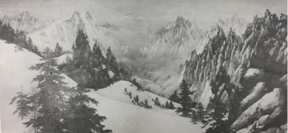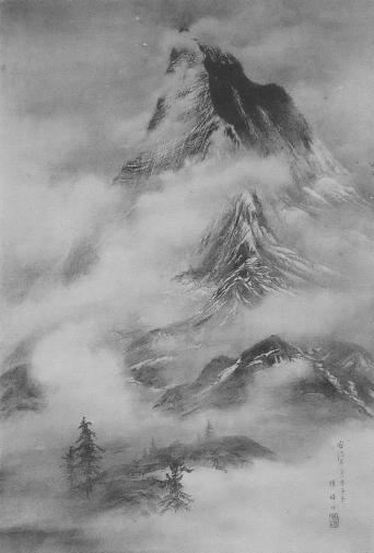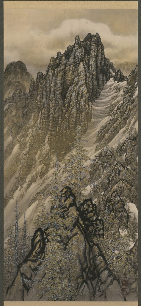 1931年,那須雅城抵達嚮往已久的巴黎。熱愛山岳的畫家並且穿過平原、翻過山麓,前往近代登山運動發源地-白雪皚皚的阿爾卑斯山朝聖。他抬頭仰望,眼前是高聳入雲且潔白的馬特洪峰(Mont Cervin)。最後,那須藉由秀麗細緻的日本畫,將阿爾卑斯山描繪下來,完成他長久以來的夢想。【圖5】