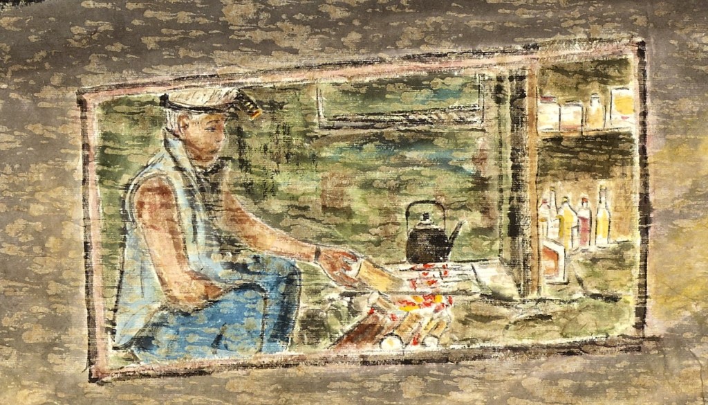 經過白天的跋涉,此時山上的小屋,如同一葉扁舟,把疲累的身體,搖曳到睡夢中的安樂鄉。魯凱部落的石板屋,結構簡單,卻充滿先人智慧。利用大自然賜與的板岩,堆砌成屋,砌成冬暖夏涼,可與天地共呼吸的石板屋。在奧崴尼山上的小屋內,有壺,有咖啡,有簡單的調味料,奧崴尼適意地在柴堆上架起鐵網,燒起了一壺水。